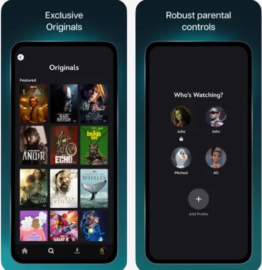 يساهم التطبيق Disney+ في عرض الأفلام والقصص، بالإضافة إلى مسلسلات ديزني Pixar، Marvel و Star Wars وكذلك مقاطع ناشيونال جيوغرافيك وغيرها من العروض والمباريات المنتظرة.