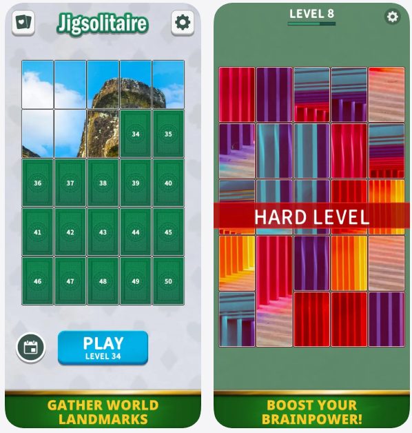 تعدّ Jigsolitaire إحدى ألعاب الألغاز التي يمكن حلّها بمجرد ترتيب البطاقات المربّعة الموزّعة عشوائياً لتشكيل صورةٍ نهائيةٍ تطرحها اللعبة من المناظر الطبيعية إلى الزهور والخطوط وغيرها الكثير.
