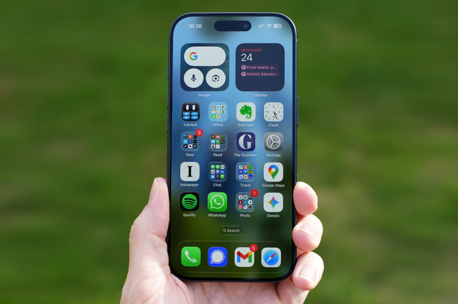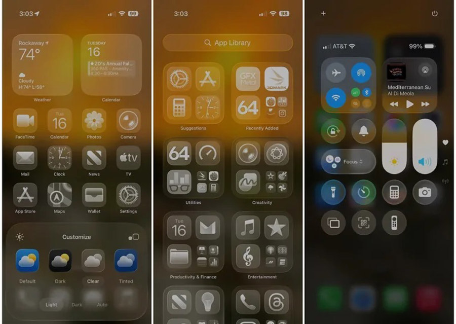 وقد صمّمت أبل واجهة الاستخدام لهذه الهواتف وفق المعيار Liquid Glass، لتظهر القوائم والعناصر الأخرى من النظام بشفافية موافقة للضوء المحيط.