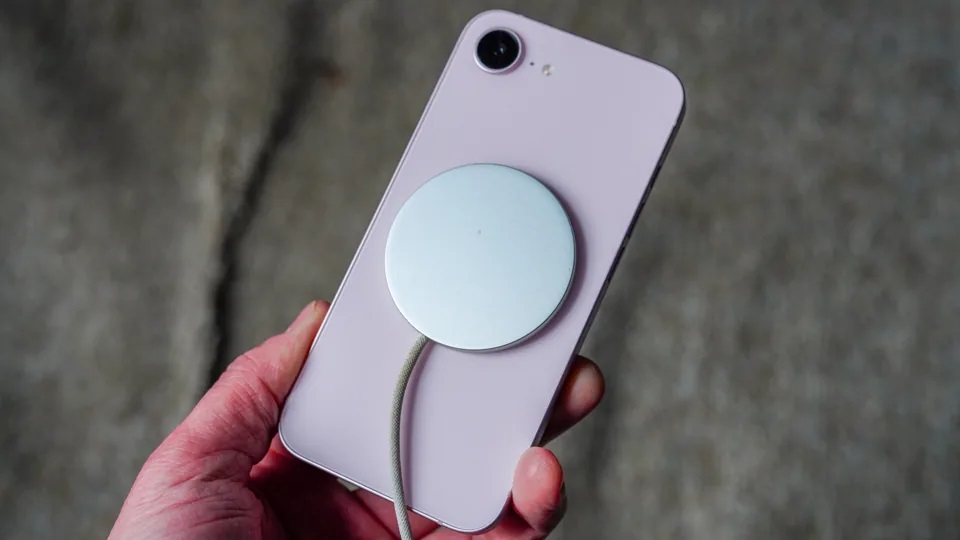 وعلى خلاف الجيل السلف، جرى تزويد الهاتف iPhone 17e بأشرطة مغناطيسية دائرية في الخلف، لدعم ميزة الشحن MagSafe فأصبح بوسعنا تثبيت الشواحن اللاسلكية مع الهاتف، وشحن الملحقات الخارجية أيضاً.